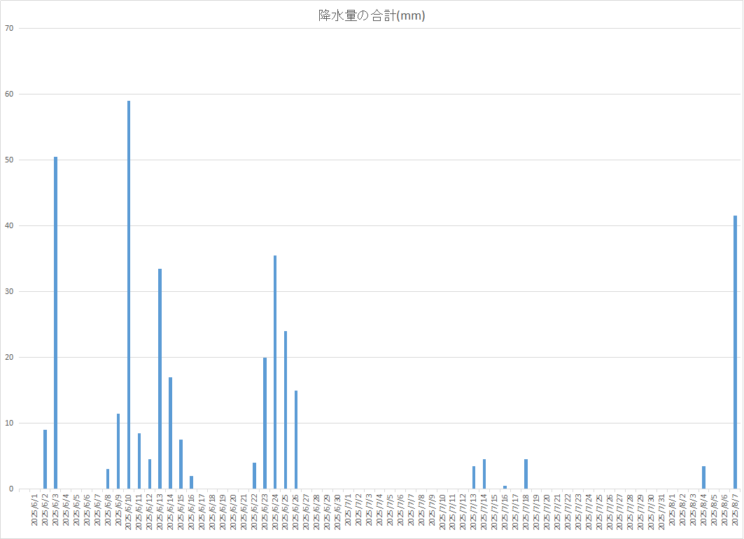 5mm以上の降水量があったのは6月26日が最後でした。40日以上まとまった雨が降っていなかったようです。