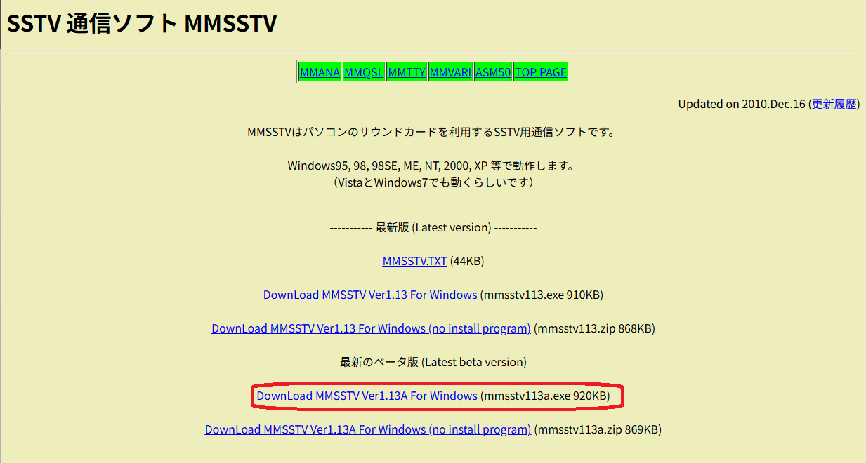 SSTV用ソフトはMMSSTVを使います。MMSSTVは以下からダウンロードできます。