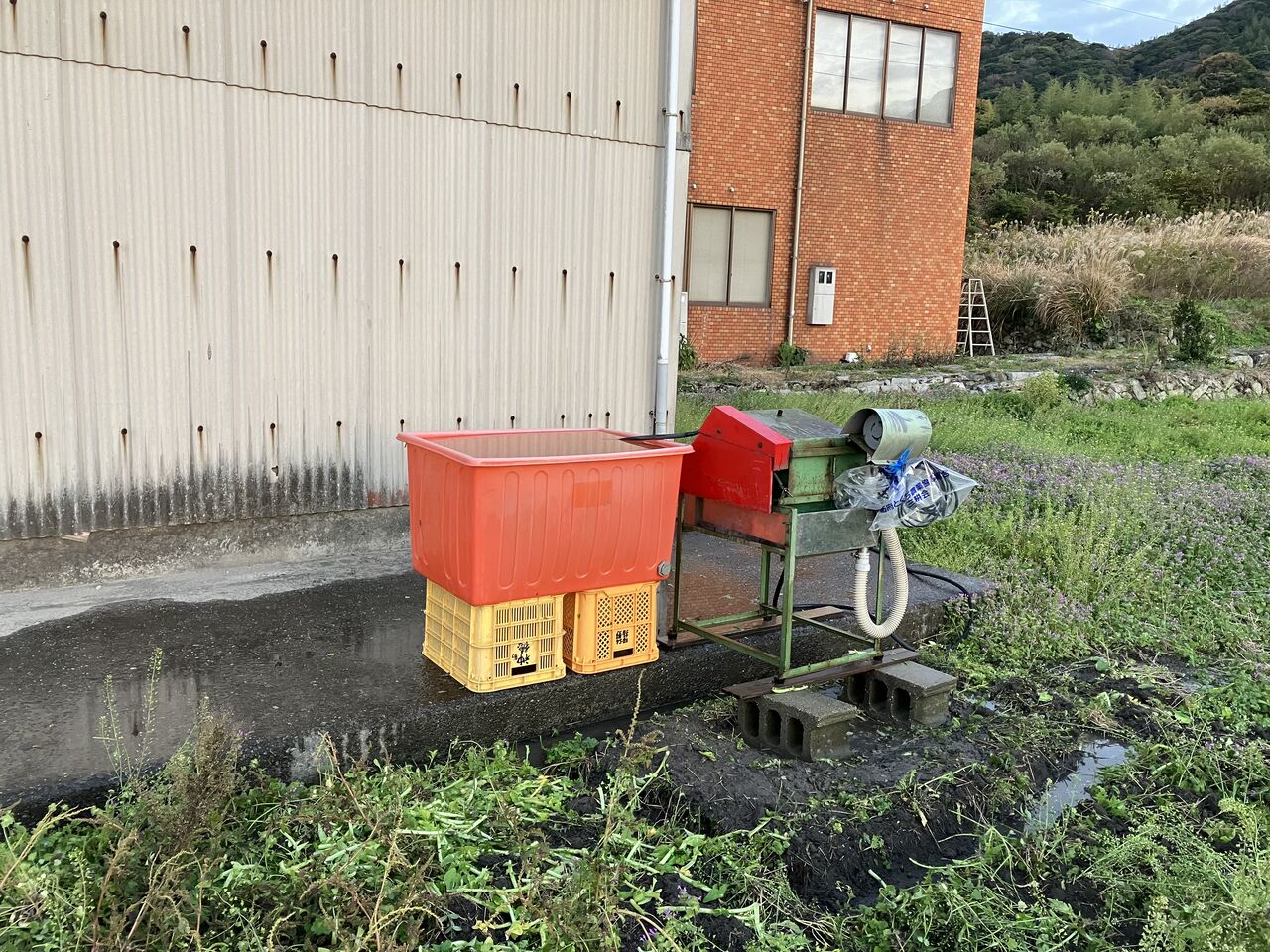 冬に大根洗い機を置いて大根を洗いますが、洗い機と倉庫の間にダイコンを積んだ運搬車を入れてダイコンを洗います。