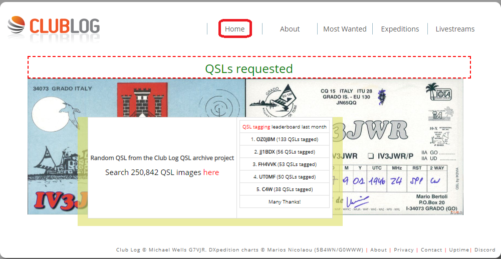 また、ClubLogの重要な機能として、DXペディション局がよく利用するOQRS(Online QSL Request System)があります。