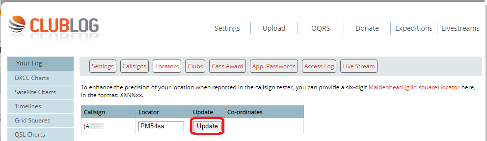 コールサインを登録したら、グリッドロケーターを登録しておきます。