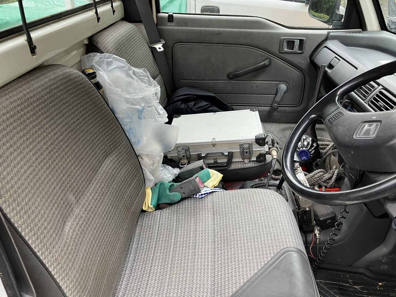 まさかと思ったのですが、トイレ前に駐車してあったJH4YXY会長のJA4ICBさんの軽トラの中を見たらジュラルミンの発信機がありました。