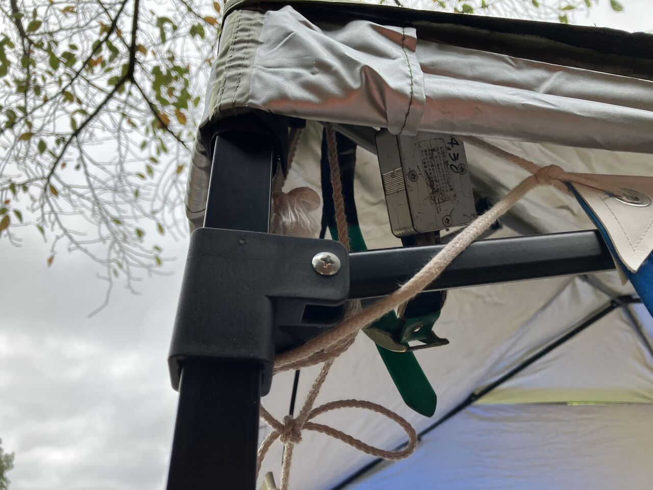 テントの支柱に小型発信機が付けてありました。見えにくい位置なので、なかなか分かりませんでした。