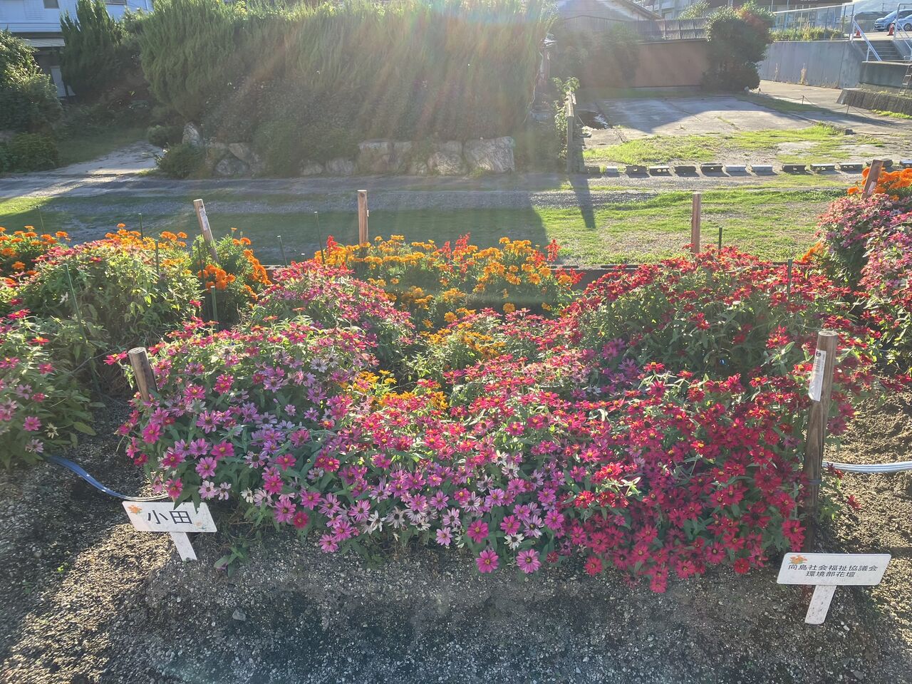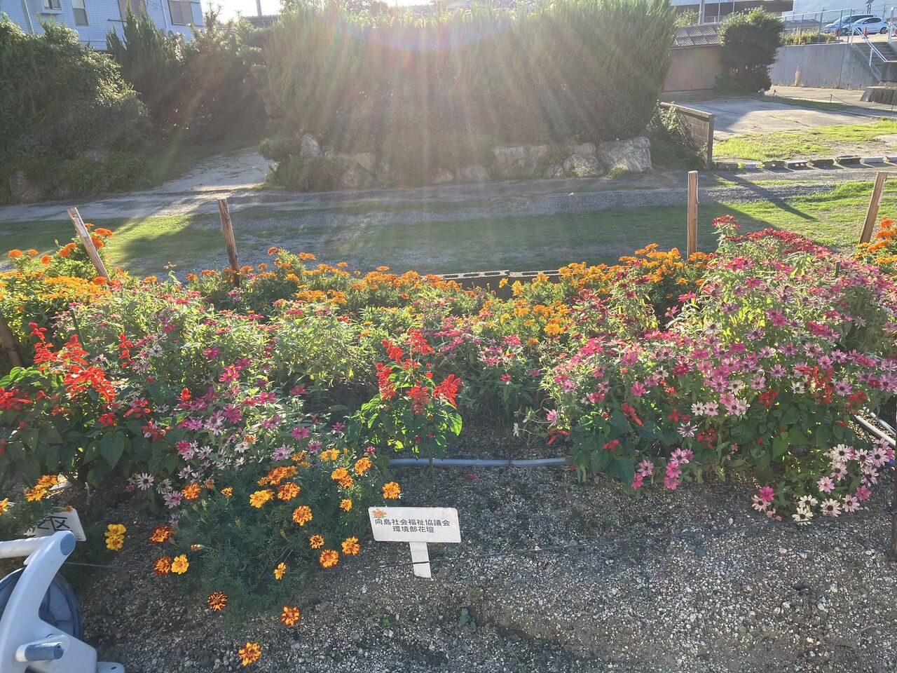 各地区の花壇の写真も載せておきます。逆光ですが、こういう写真も良いですね。