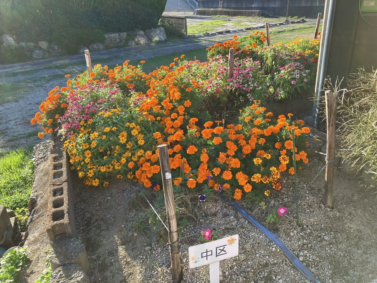 前回の花壇の世話が10月19日で5日しか経っていませんが、マリーゴールドとサルビアが咲いてきたので今が一番きれいな時期なのではないかと思います。