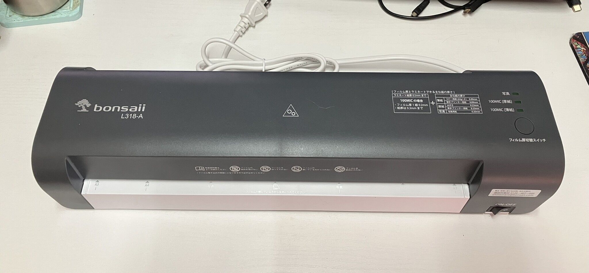 展示机の前にぶら下げるポスターはラミネートしたほうが良いので、今回安物のラミネーターを購入しました。滅多に使わないので安いものにしました。