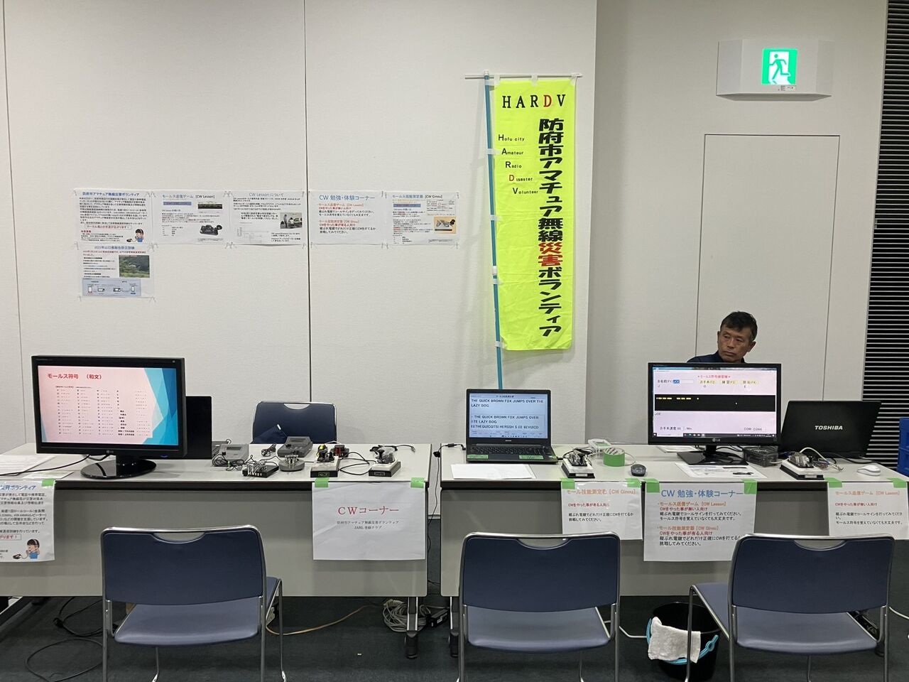 私は防府市アマチュア無線災害ボランティア(HARDV)の「CWコーナー」と自分の「FT8相談&FreeDV体験コーナー」のセッティングをやりました。HARDVからは私も含めて5名が参加しました。