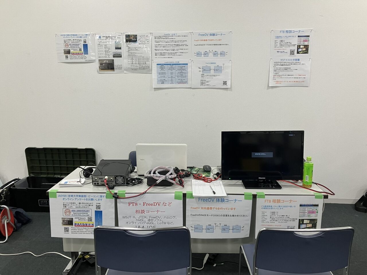 今回も「FT8相談コーナー」ブースを担当しましたが、最近はFT8の相談者が少ないので「FT8相談&FreeDV体験コーナー」という事にしてFreeDVのデモを行いました。