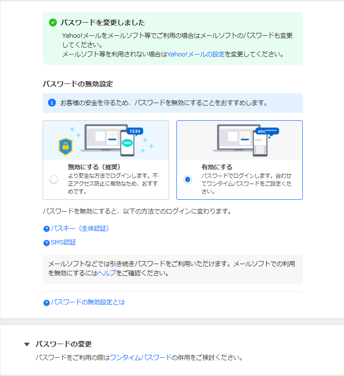 (11月19日 追記)ロ―カルさんがYahoo!のパスワード変更ページで「パスワードを有効にする」に出来ないという問題で困っていらっしゃいました。最終的にGmailに乗換えてもらいました。