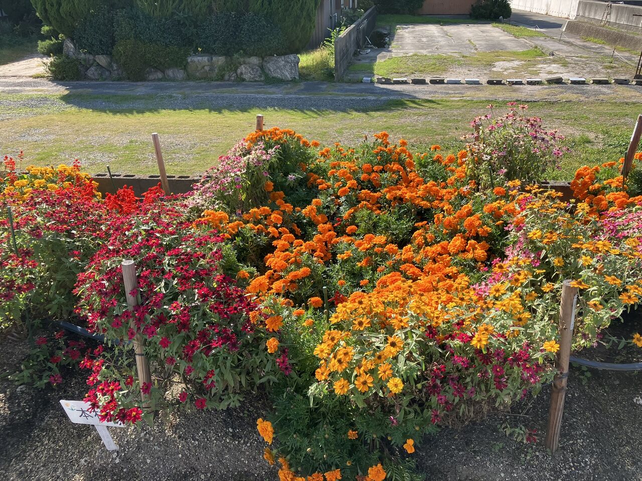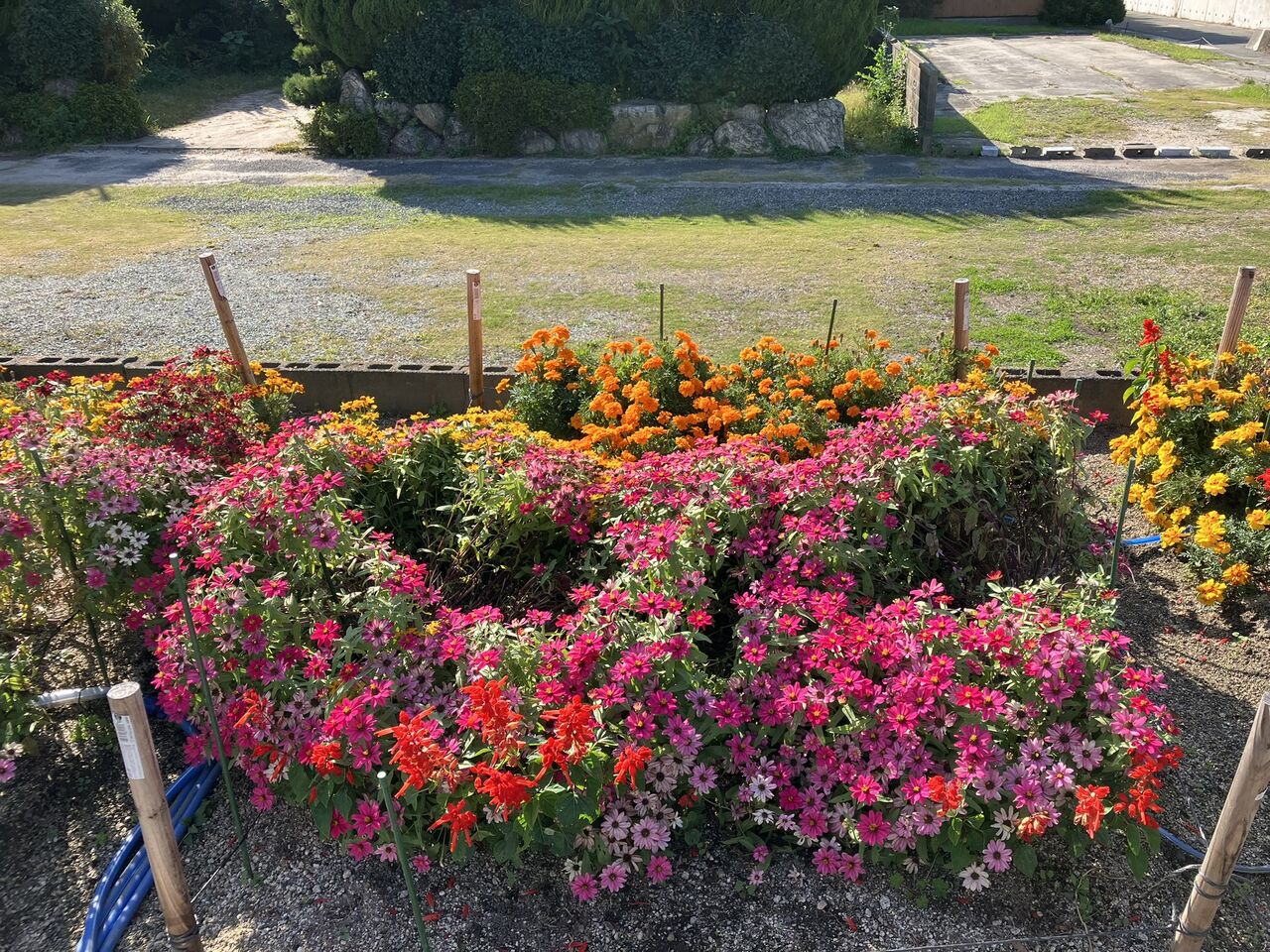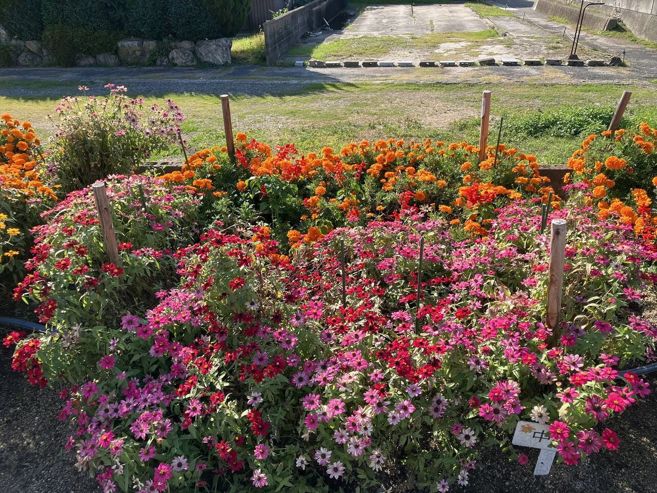 明日で終わりにするのは勿体ないくらいきれいに咲いています。夏の間はあまり花が咲かなかったサルビア、マリーゴールドがたくさん咲いています。