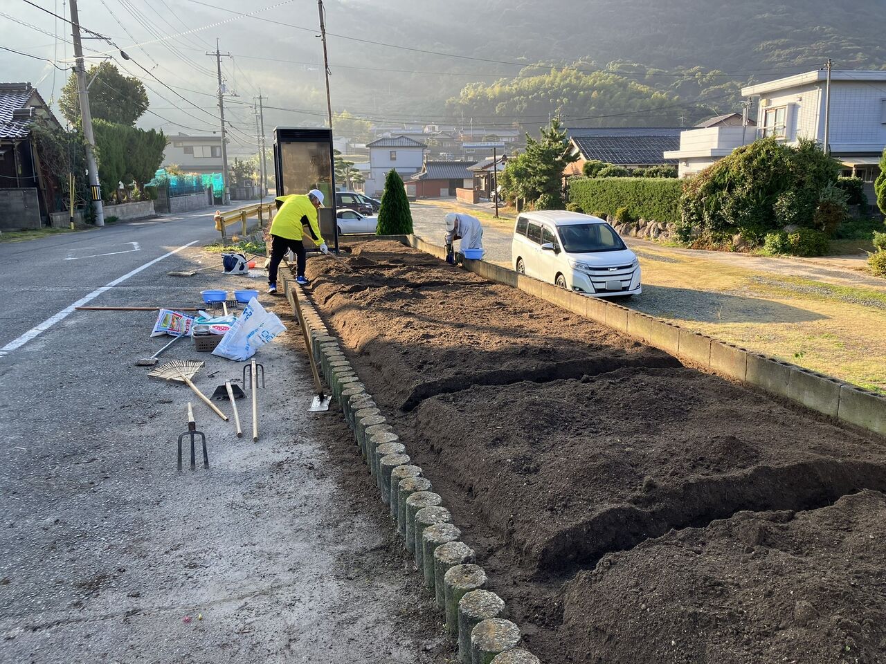 昨日(11月17日)は自治会花壇を耕してパンジーの植付準備をしました。