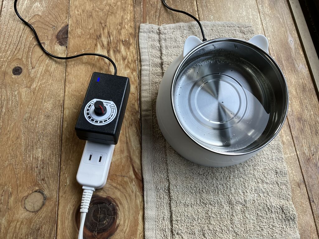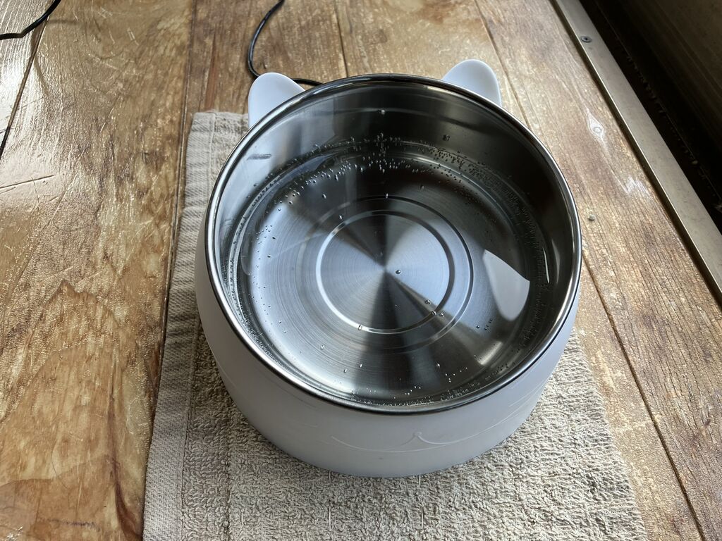 三毛猫「花ちゃん」の保温水飲みボウルが調子悪くなったので買換えました。