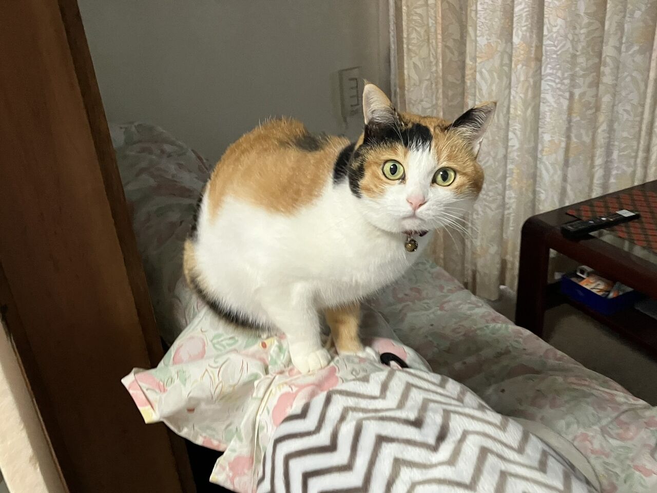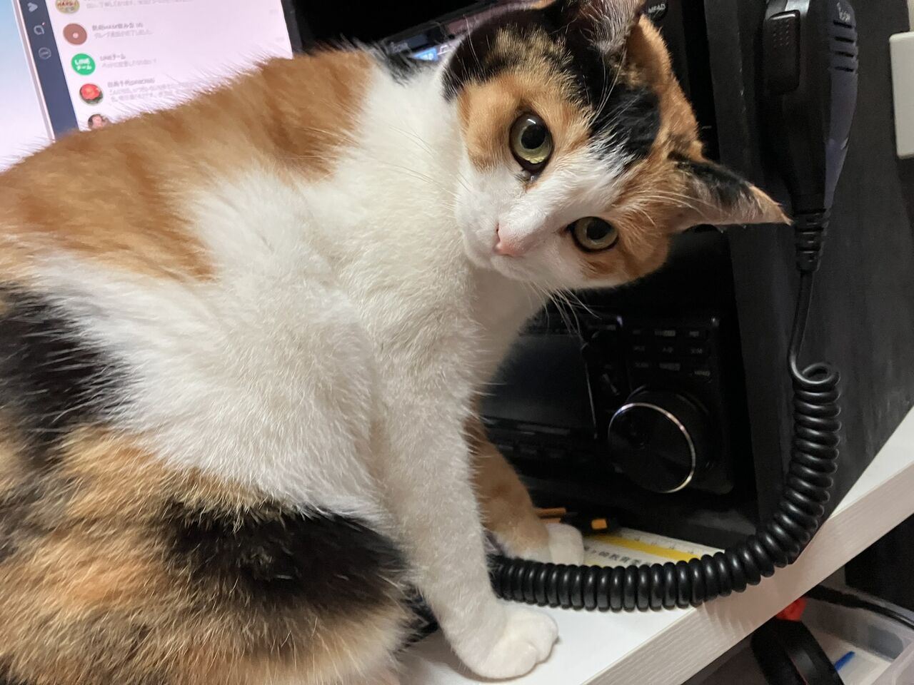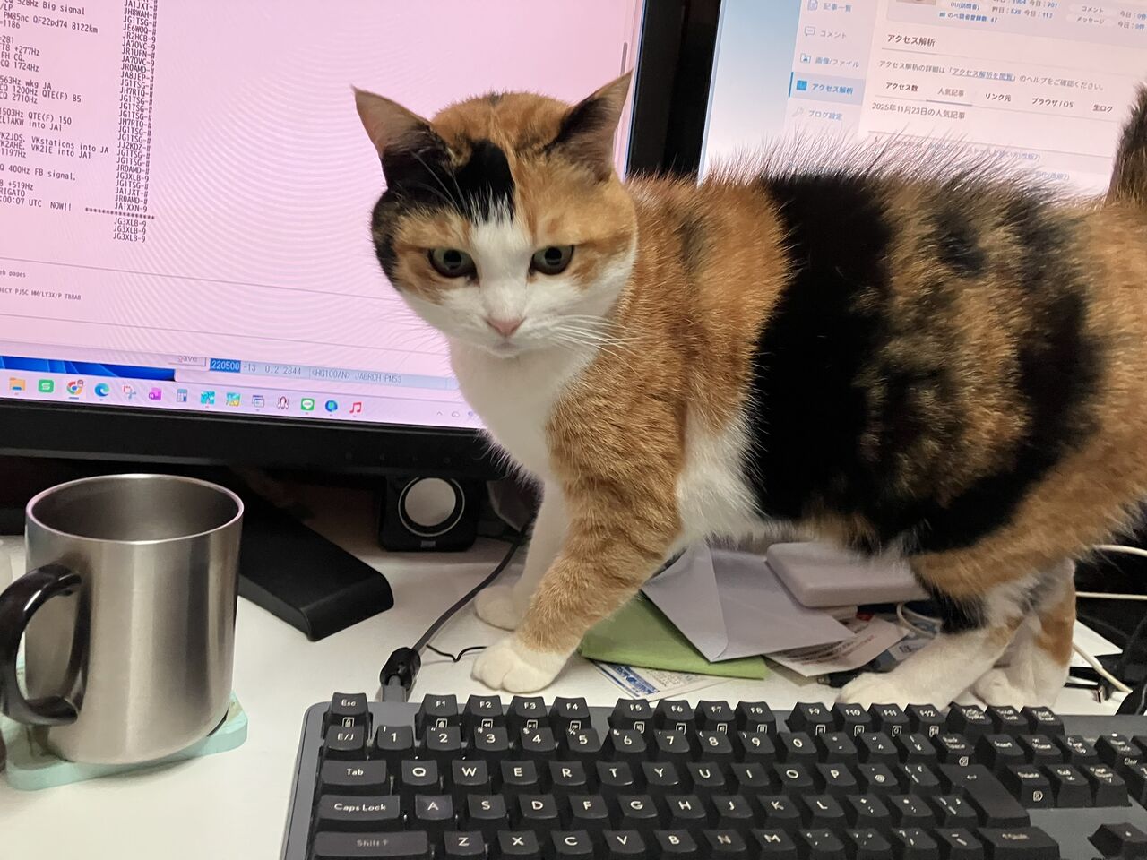 私の部屋でエアコンを入れていると机の上に上がって来て邪魔します。