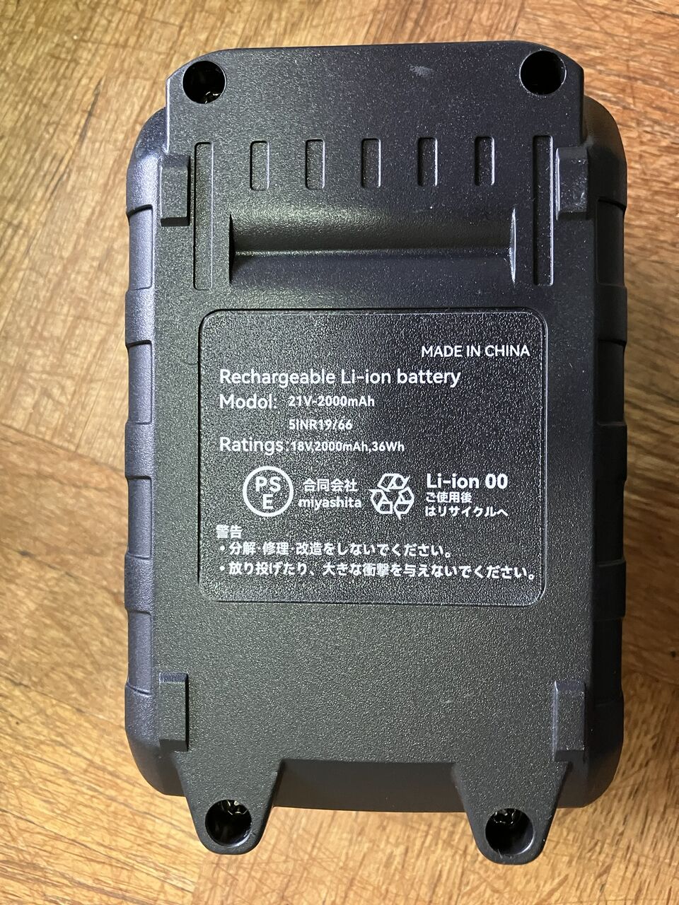 容量表示は2000mAhでハンディーチェーンソー(3.0Ah)の2/3です。実際は16850バッテリー5本のシリアル接続で、ハンディチェーンソーは16850 5x2構成なので容量は1/2だと思います。