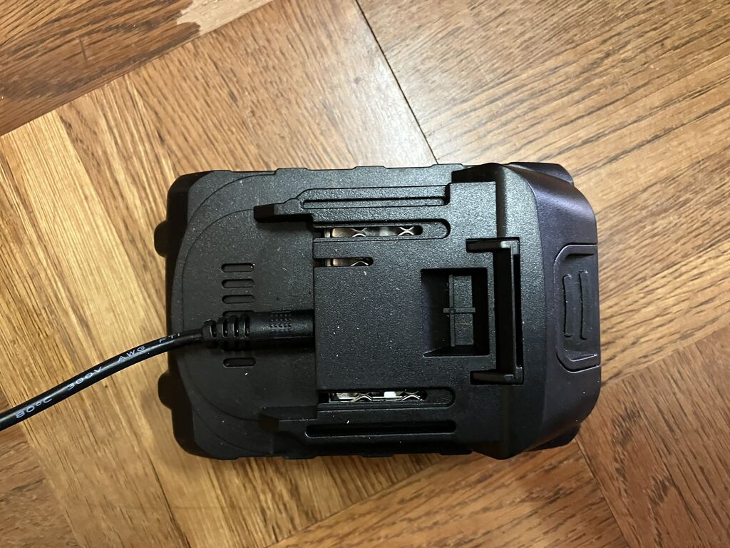 充電はハンディーチェーンソーと同じでACアダプターをバッテリーに接続して充電します。電圧が同じなのでACアダプターは共有できそうです。