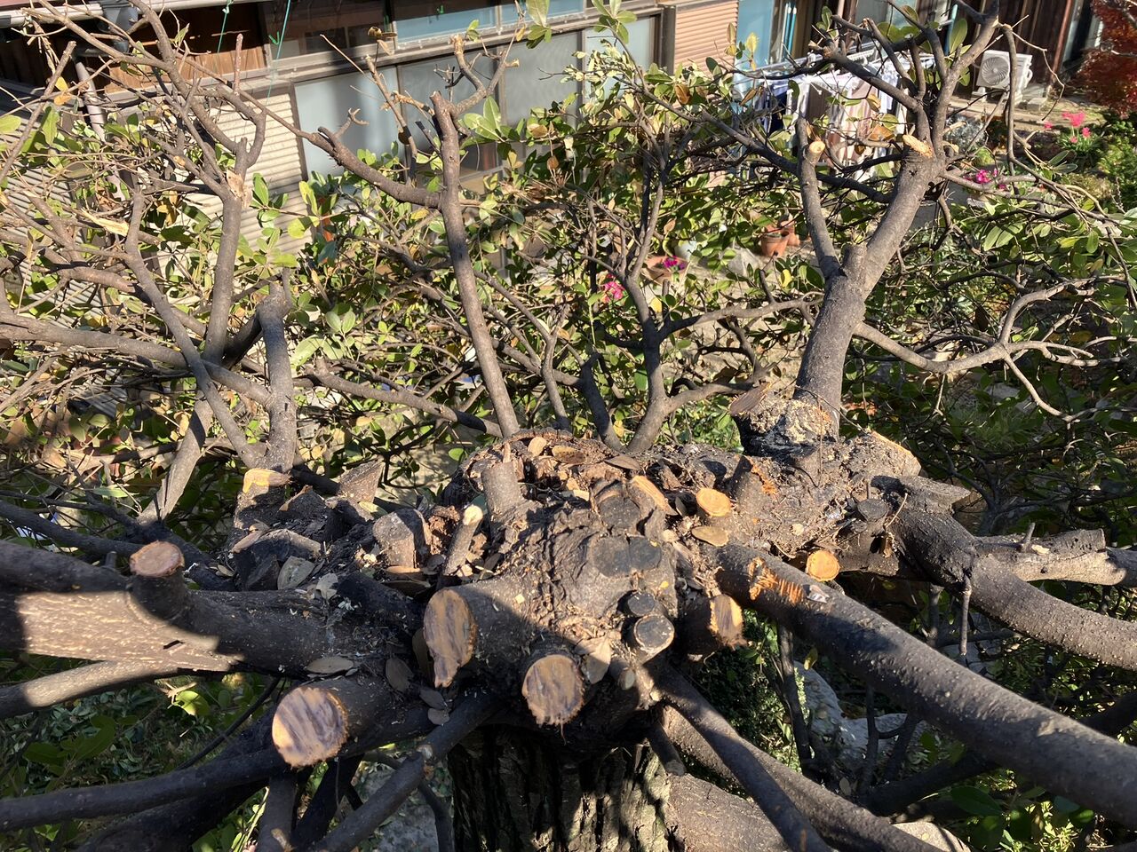 剪定後です。今回高さを低くしたかったので上方向に伸びている枝を全部切りました。
