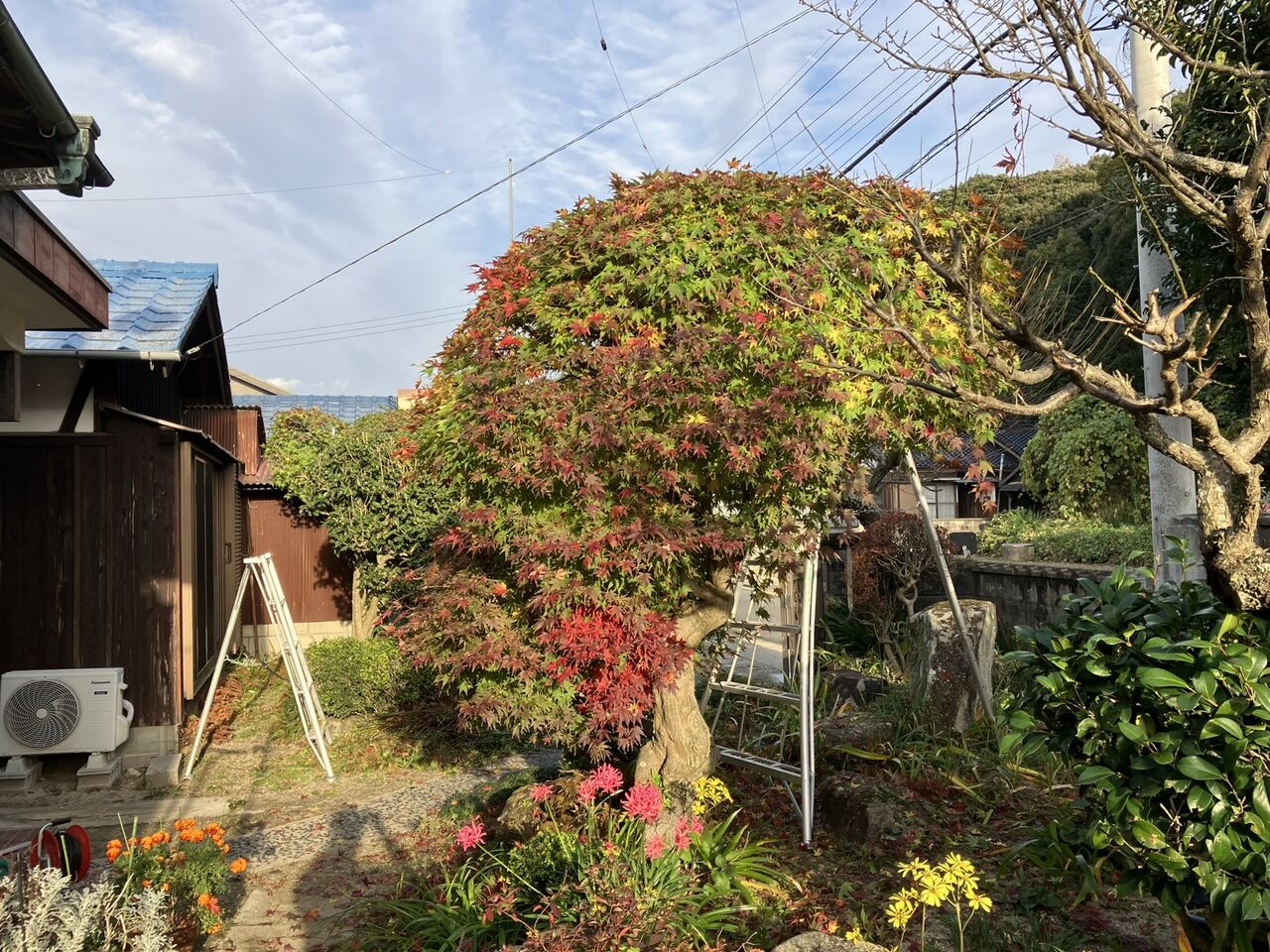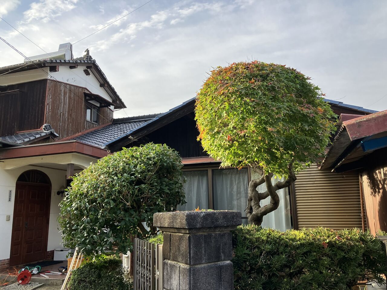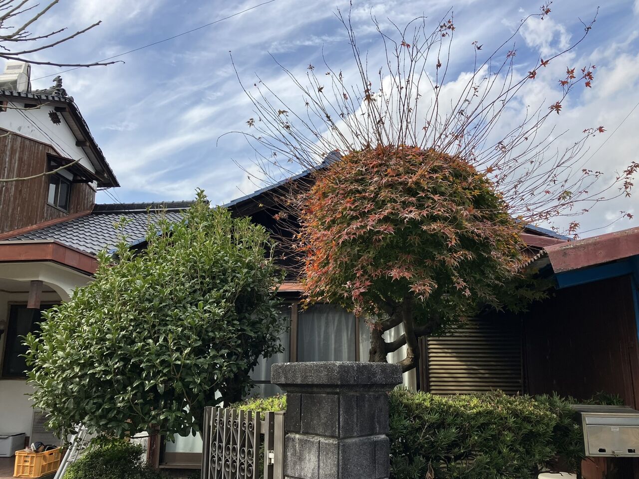 門の横のモミジ、金木犀と玄関前のモミジを剪定しました。主にバッテリーヘッジトリマーと小型電動剪定鋏を使いました。