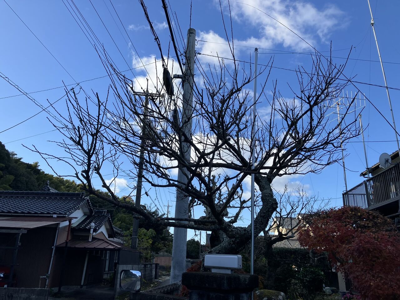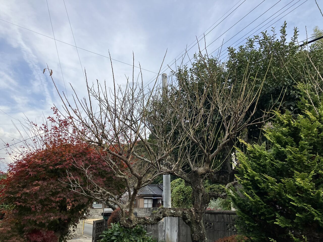 梅は葉が無くて細い枝を落とすだけなので、剪定前と剪定後の変化が分かりにくいですね。(^^;