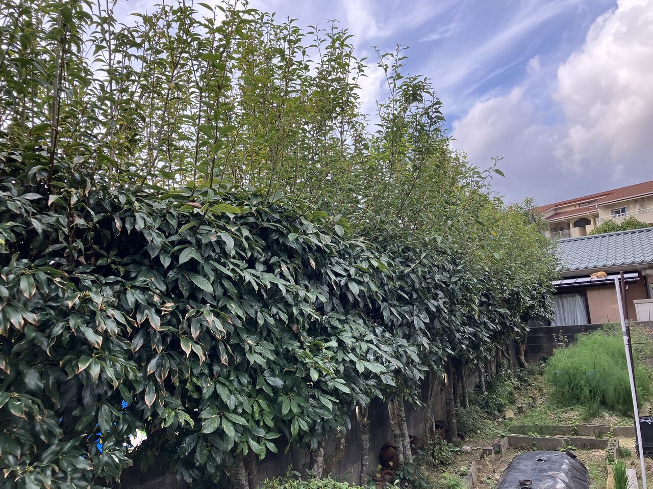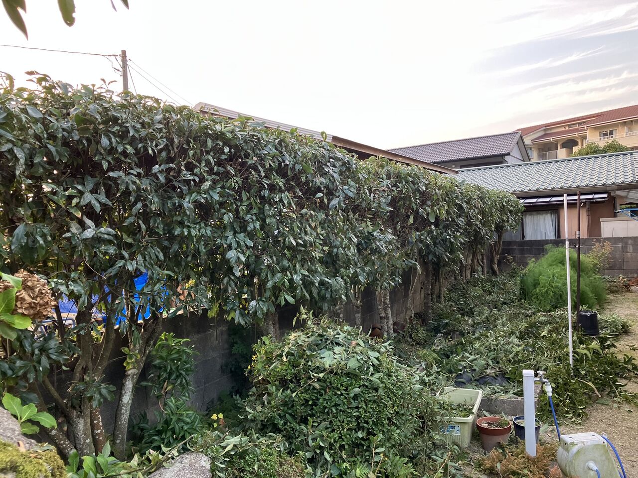 西側の生垣を剪定しました。