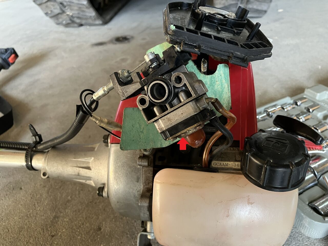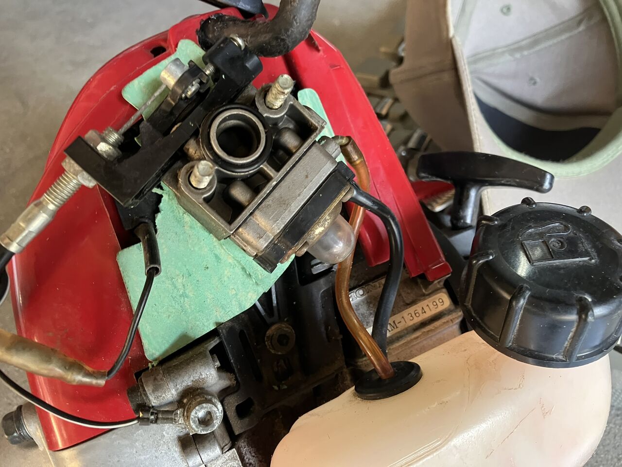 11月末に東側畑の上の旧ミカン畑の女竹と雑木を切りましたが、女竹を刈るのに使った草刈機のエンジンのプライマリーポンプが破れてエンジンが掛かりませんでした。