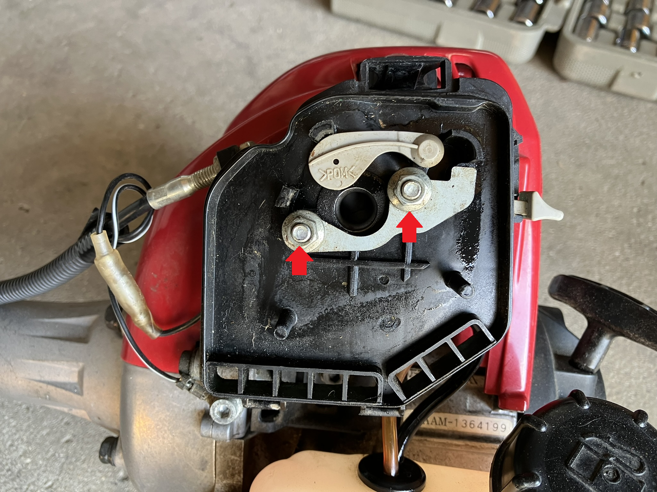 エアクリーナーとキャブレーターを外してプライマリーポンプのネジ4本を外してプライマリーポンプを外します。