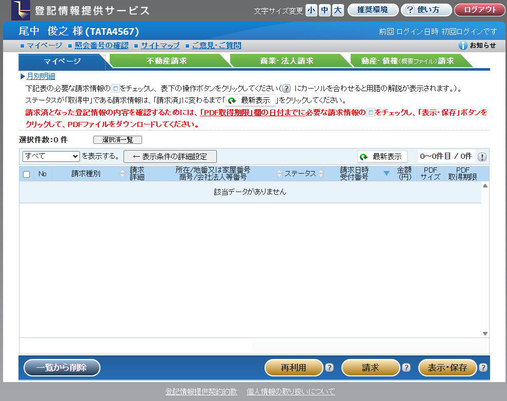 登記情報提供サービスは個人で使う場合、一時利用と個人利用があります。