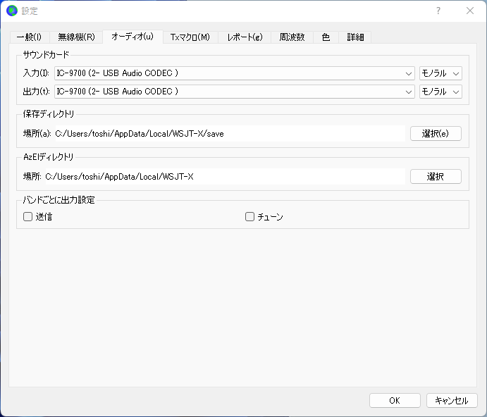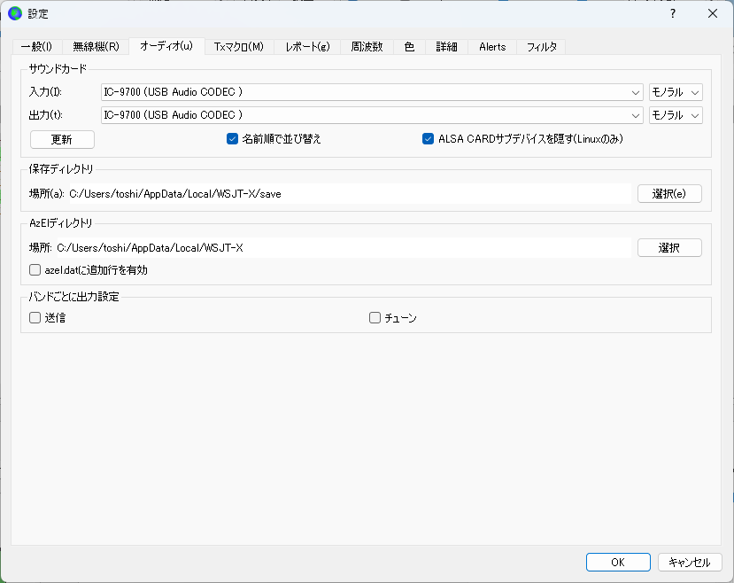 サウンドカードはIC-9700のサウンドデバイスを指定します。