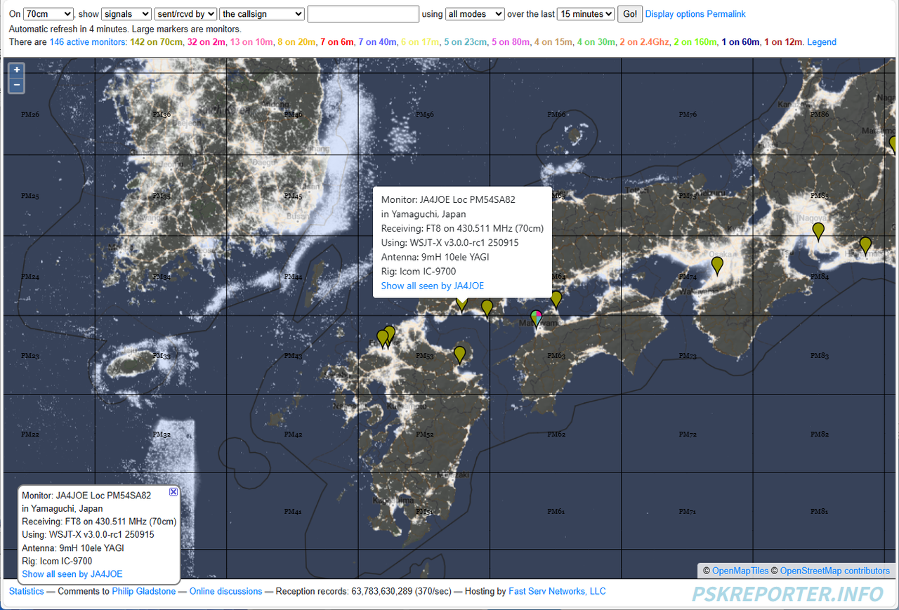 毎週金曜日 20:00~21:00 JST 144.460MHz FT8 / Q65 ModeA 30Sec の微弱通信