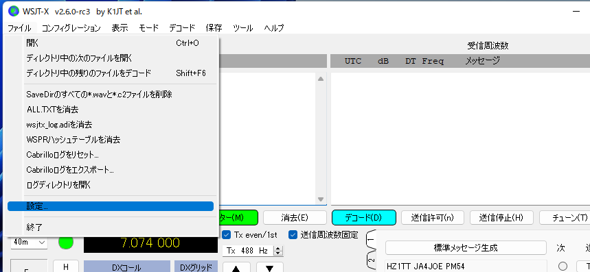 WSJT-Xの設定を行います。