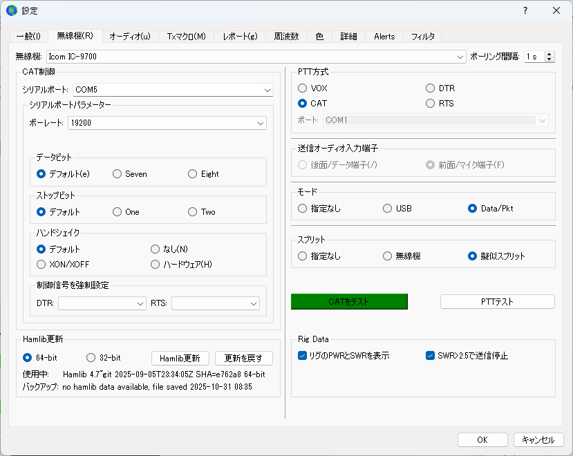 以上で2台目(IC-9700)用のWSJT-Xが出来ました。2台目(IC-9700)用WSJT-Xが正常動作しているか確認します。