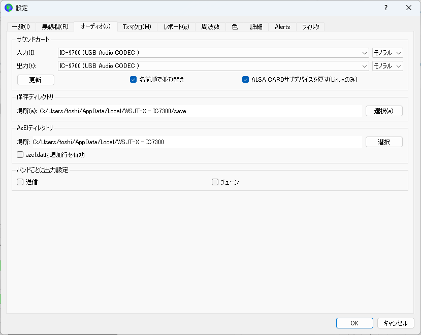 C:\Users\XXXXX\AppData\Local\ (XXXXXはユーザー名)の中に「WSJT-X - IC9700」というフォルダーが作られます。