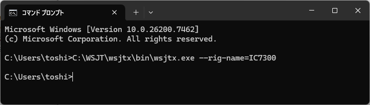 再度、コマンドプロンプトからWSJT-Xを1台目(IC7300)の引数付きで起動します。