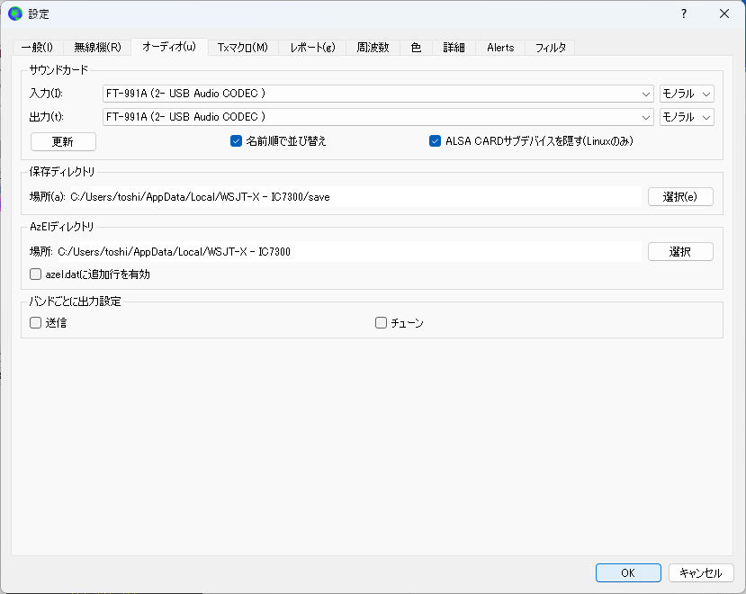 C:\Users\XXXXX\AppData\Local\ (XXXXXはユーザー名)の中に「WSJT-X - FT991A」というフォルダーが作られます。