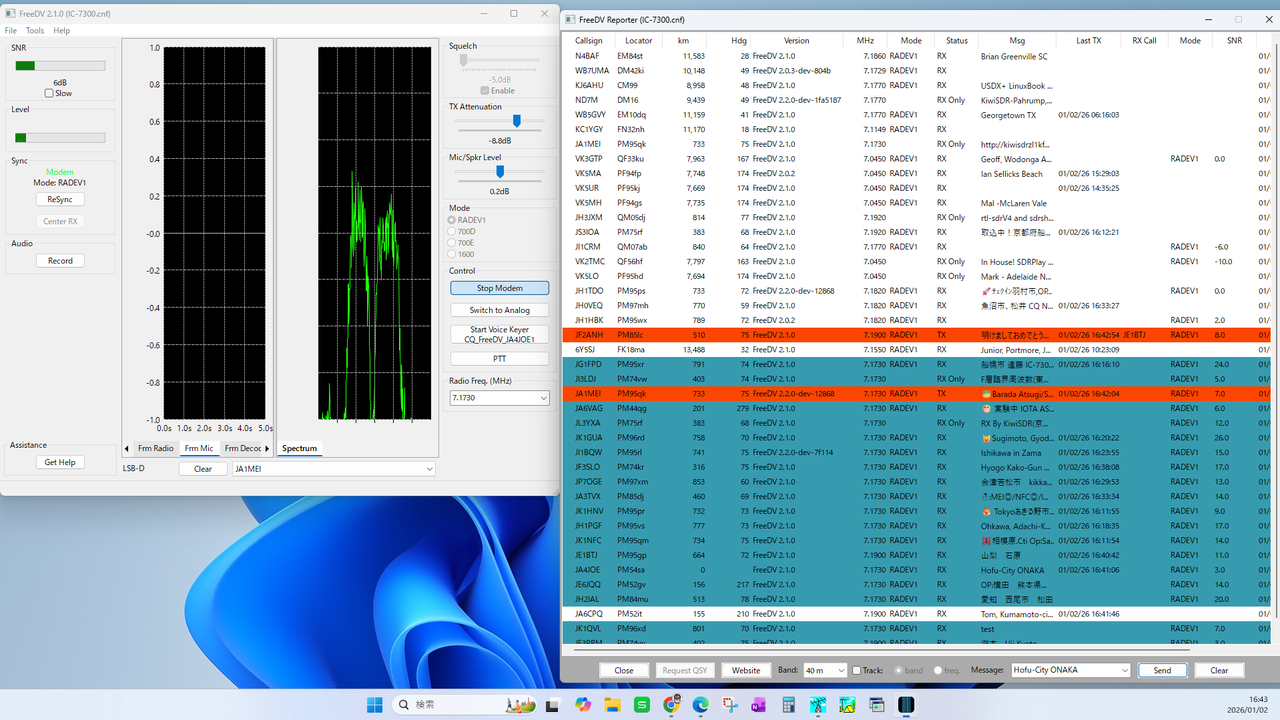 昨日、JH0PCF 神田さんから「FreeDVのロールコールを、毎日夕方に行っているので参加してみてください。」とのお誘いを受けていたので、新年の挨拶も兼ねて久々にFreeDVで出てみました。