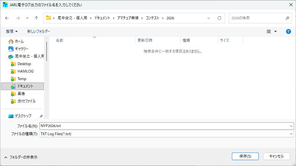 出力したCSVファイルは、コンテストデータ用の「コンテスト¥2026」フォルダを作ってコピーしておきました。