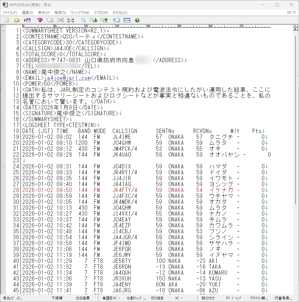 先の記事「QSOパーティーログ提出 2026」でQSOパーティーのログを印刷、送付した話を書きましたが、今年から電子ログでの提出が出来るようになったので電子ログを提出する手順の記事も書いておきます。