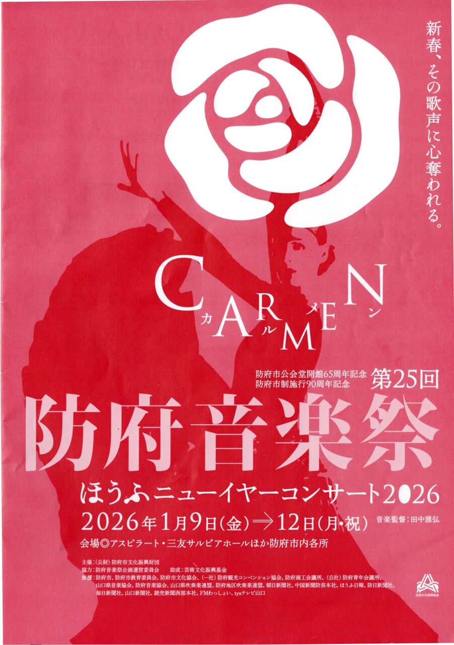 昨日は三友サルビアホールであった、「第25回防府音楽祭<ほうふニューイヤーコンサート2026>」に行ってきました。