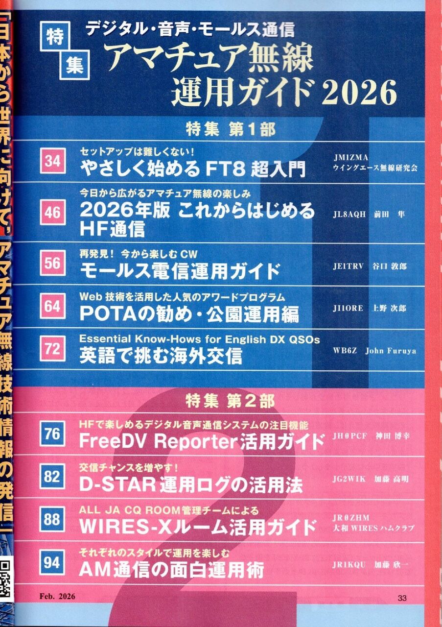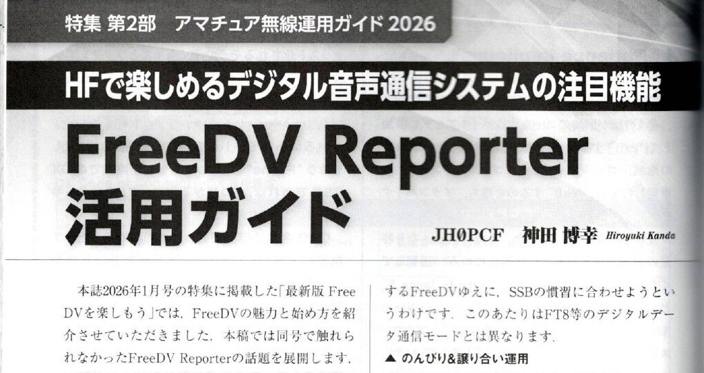 CQ誌2月号に「FreeDV Reporter 活用ガイド」という記事が載っているので、CQ誌2月号を購入しました。