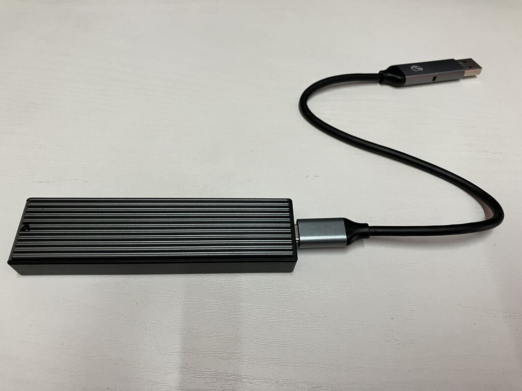 ケースにM.2 SSDを組み込んでパソコンに接続します。USBポートはUSB 3.0のポートに接続しました。