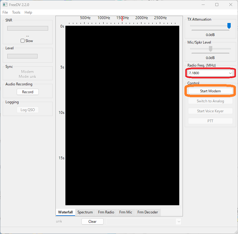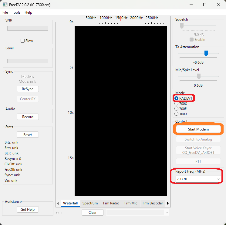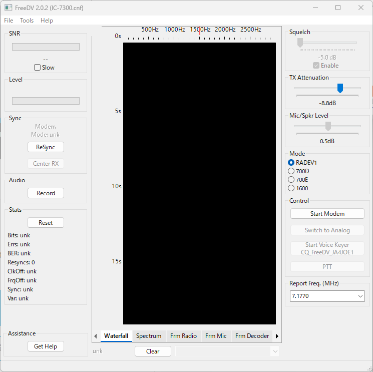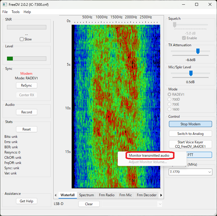 以下、FreeDVモニターの操作について簡単に書いておきます。