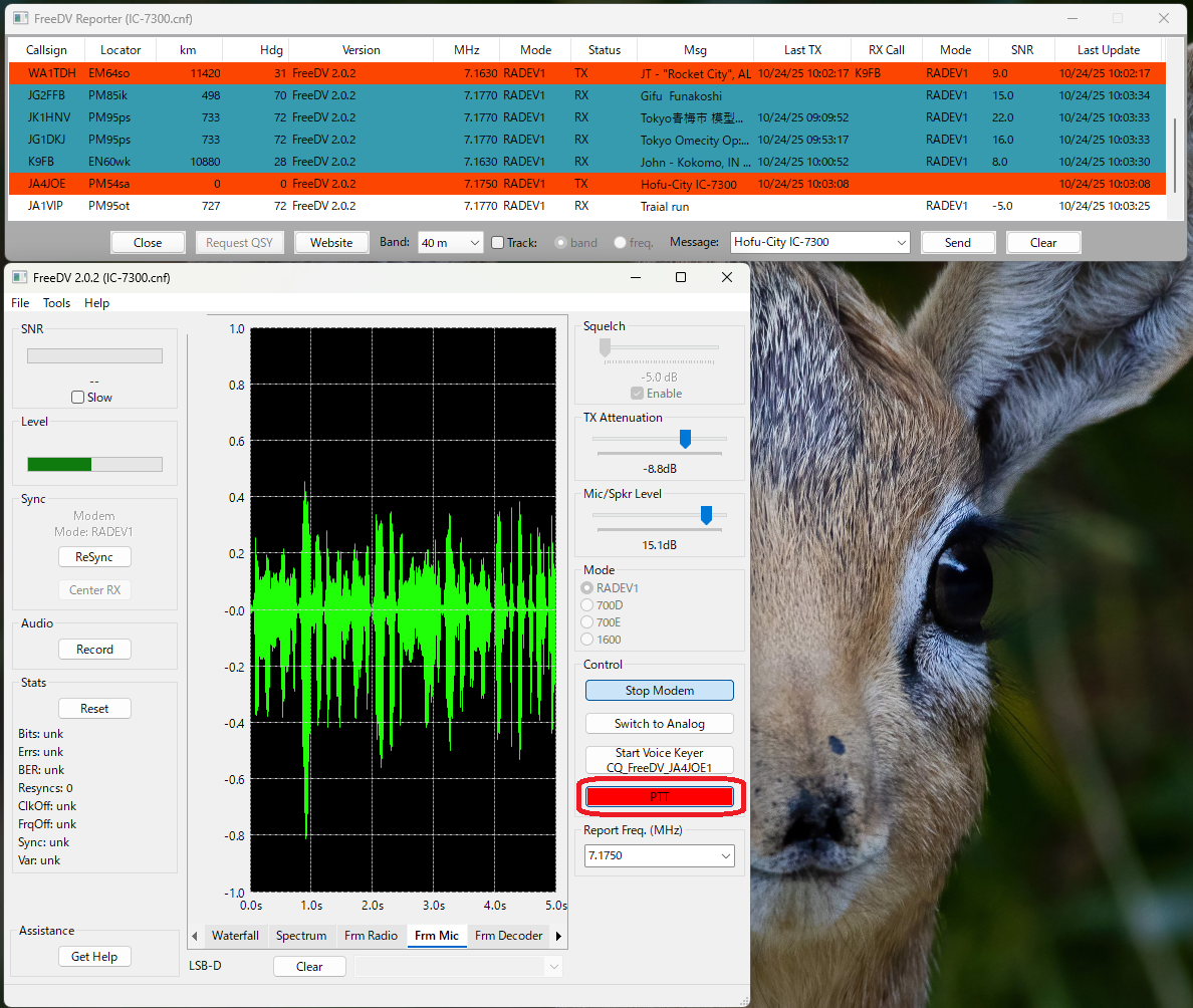 [Report to FreeDV Reporter] FreeDV Reporterにレポートを送ります。FreeDVレポーターを使うためにFreeDV Reporterにレポートを送信する必要があります。