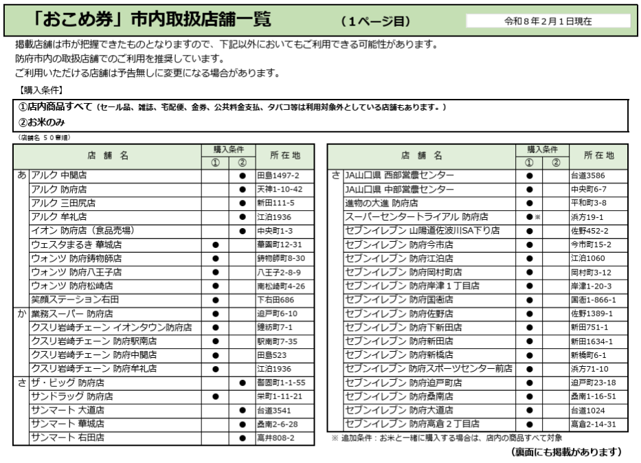 そして、昨日、市内のお米券取扱店舗一覧が公開されました。