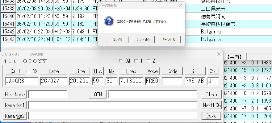 Hamlog50.dllを使えば、直接HAMLOGにログを入力できますが、ハードルが高そうです。(^^;