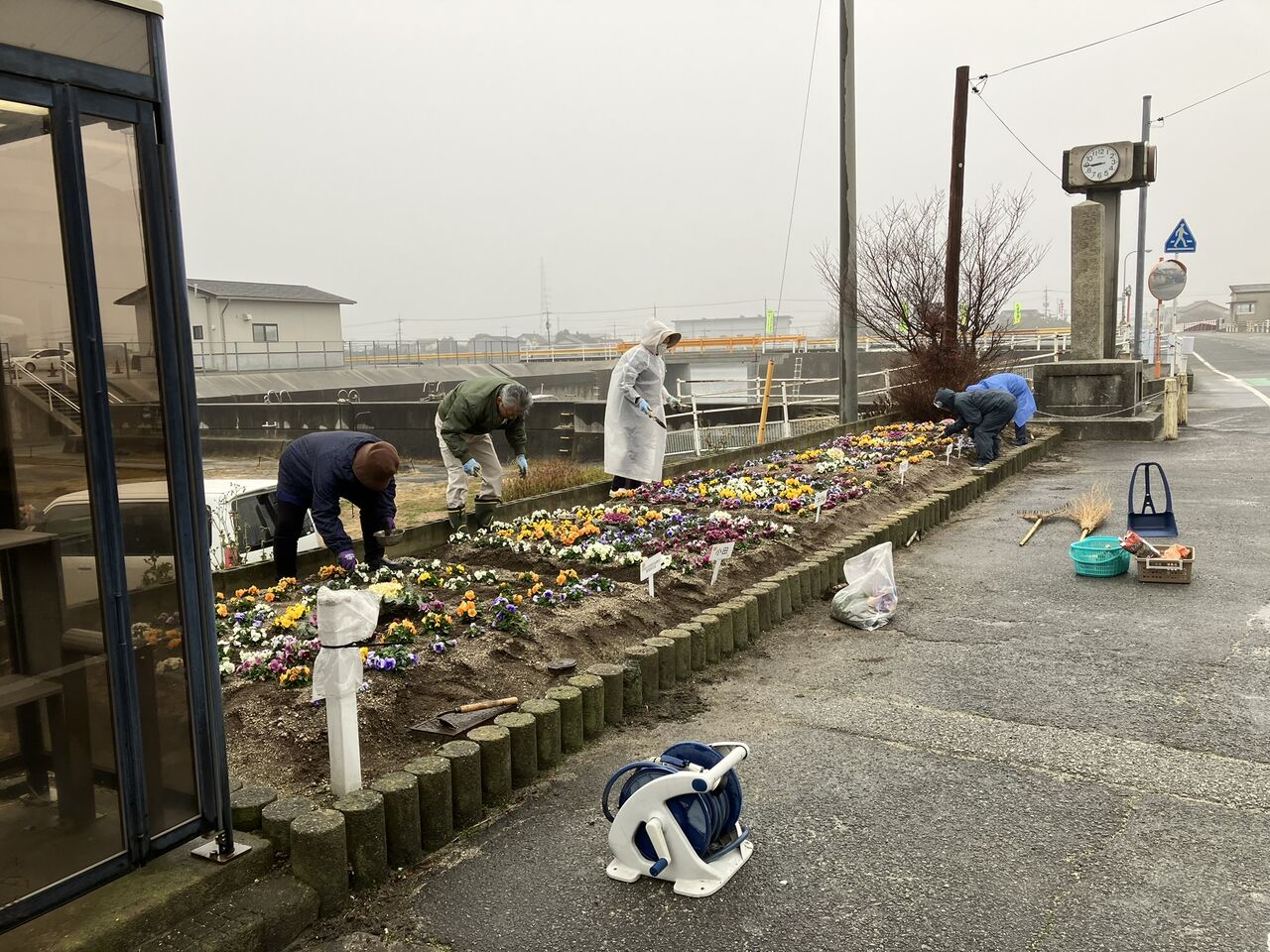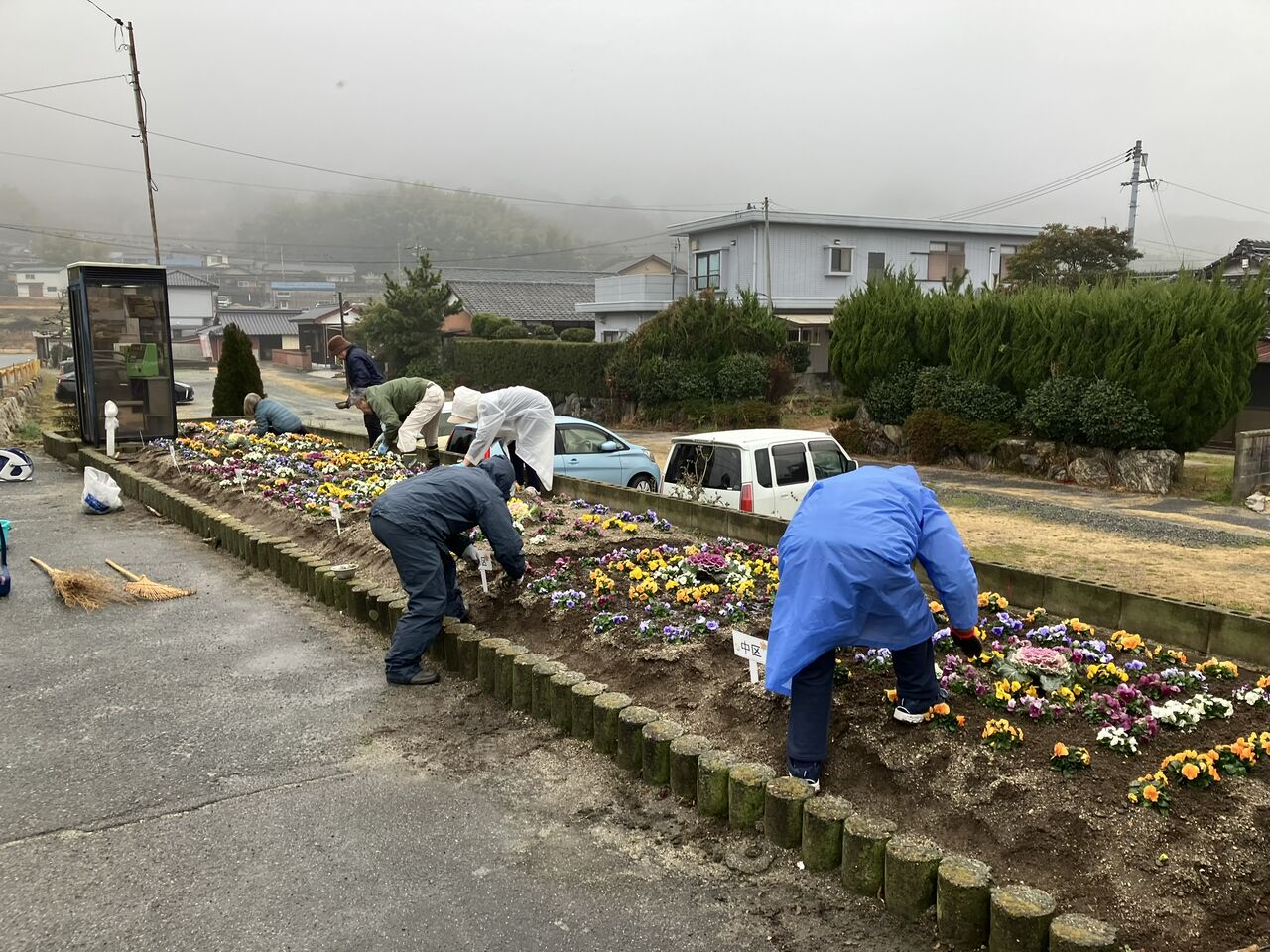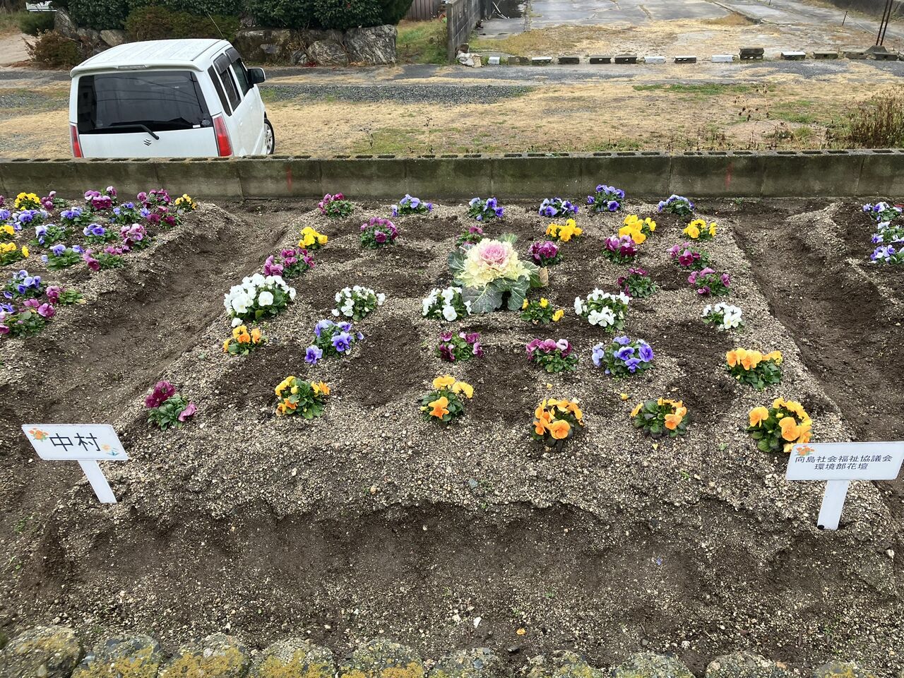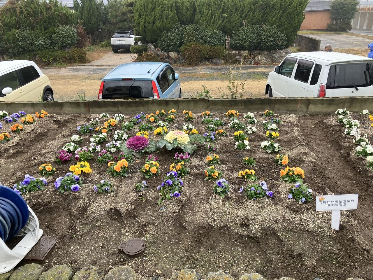 今日は自治会花壇の世話の日でした。今朝は気温が11℃で暖かかったです。