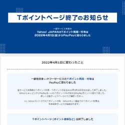 ヤフーでTポイントが使えなくなった