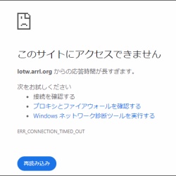 昨日あたりからLoTWにアクセスしようとすると、タイムアウトエラーになります。私だけかと思ってFBで聞いてみたら他の方も同じだそうで、LoTWのサイトがダウンしているようです。以前にもありましたが、復旧するまで待つしか無いですね。(^^;LoTWは時々、応答が遅くなったり ...