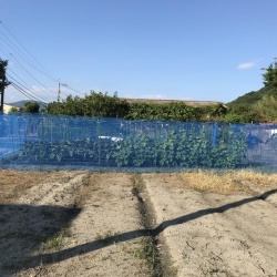 ナスの防風ネットを張りました。