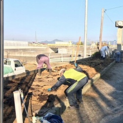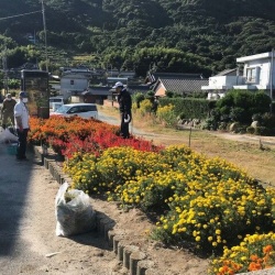 今日は朝8時半から向島入口にある自治会の花壇の植付け準備でした。 11月17日(日)にパンジーの苗を植える予定で、今日は肥料を入れて耕す作業でした。 8時25分頃に着いたら、例によって始まっていました。(^^; 石灰は既に入れてあるそうで、最初に牛糞堆肥と油粕を撒いて管 ...